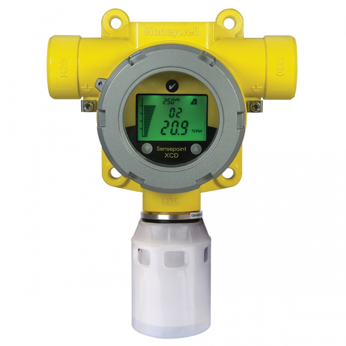 Honeywell XCD Sensepoint Gas Detector, Hydrogen (H2) Electrochemical Sensor with aluminium housing (optional stainless steel), stainless steel sensor head, explosion-proof IP66 for hydrogen (H2) 3-wire 24 VDC power, include 2 programmable alarm relays, 1 programmable fault relay, 4-20mA output (sink or source selectable); Modbus RTU option available. User-Selectable full scale range 1,000ppm only UL/CSA Class I Division 1 or ATEX IECEx available