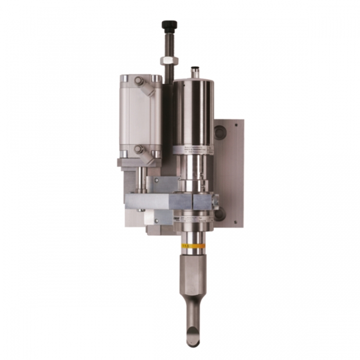 The ultrasonic cutting station with integrated special actuator SV35-40 is suitable for cutting and sealing operations of textiles and fabrics with a minimum of 50% synthetic fibre content.