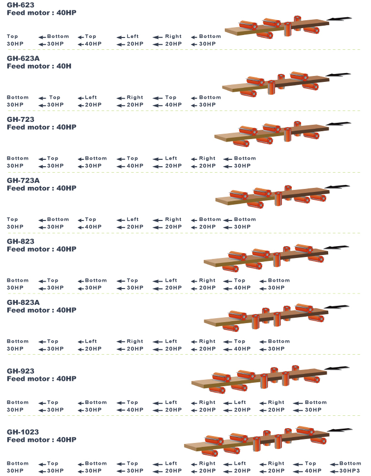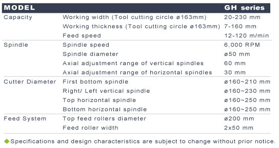 When looking for a really high productivity, high precision, and labor cost-cutting 4-side moulder, the GAU JING all new GH series is right for you.