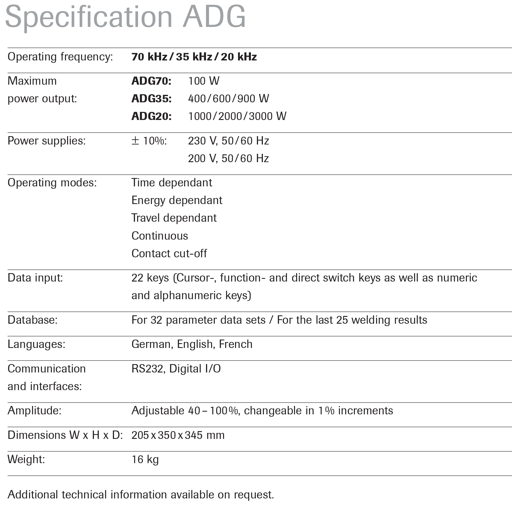 A part counter and a reject counter are integrated into all ultrasonic generators from the ADG series.