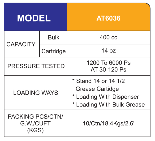 AT-6036 Air Grease Gun 400cc/14oz