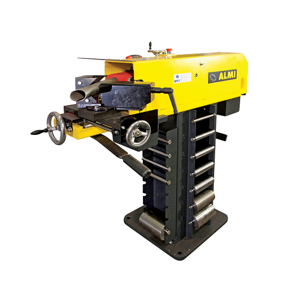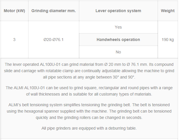 ALMI pipe grinders are very sturdy machines because they operate at high speeds. Consequently their stability has a big influence on the ultimate result. Stainless steel profiles and tubes can be machined quickly and problem-free at high speeds. And without grinding burrs or heat discolouration. The grinding rollers can be changed in only a few seconds. And without having to use any tools. Because this operation has to be carried out several times a day, this will save you an enormous amount of time and money! The grinding belt can also be changed easily from one side of the machine. Once the profiles and tubes have been ground, they can be deburred using the handy deburring table at the top of the machine. The ALMI machines with lever operation are suitable for both left-handed and right-handed operators. With just one simple movement, the lever can be placed either on the left or on the right.