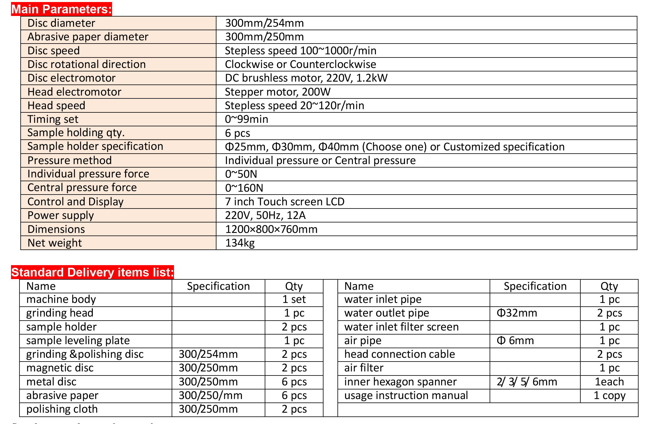 - The size of the disc is larger than the same products in the market, can select 300mm or 250mm grinding disc, adapted to various materials preparation of test samples.