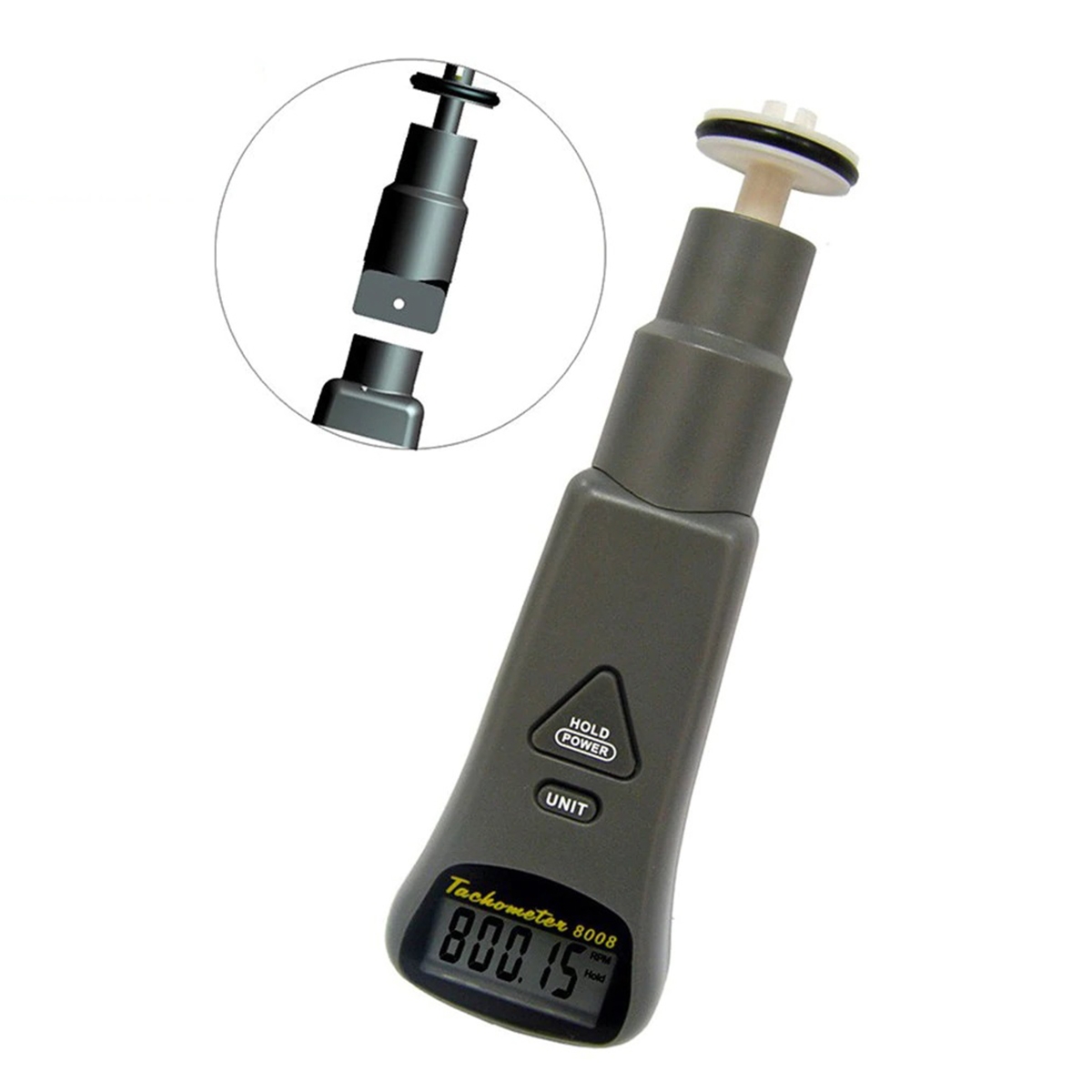 The 8008 AZ RPM meter (RPM: Revolutions Per Minute), which has tow way to measure the rotation speed of a shaft, including the motor, truck, machine, engine, automobile, vehicle industry.
