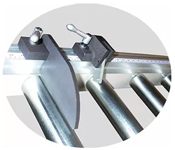 Extension Stop (Option) ● Extension stop is used on outfeed roller conveyor. It is convenient for length stop and for repetitive cutting in a mass production line. ● There are 3 kinds of extension stop, fix stop, flip stop and lift stop.