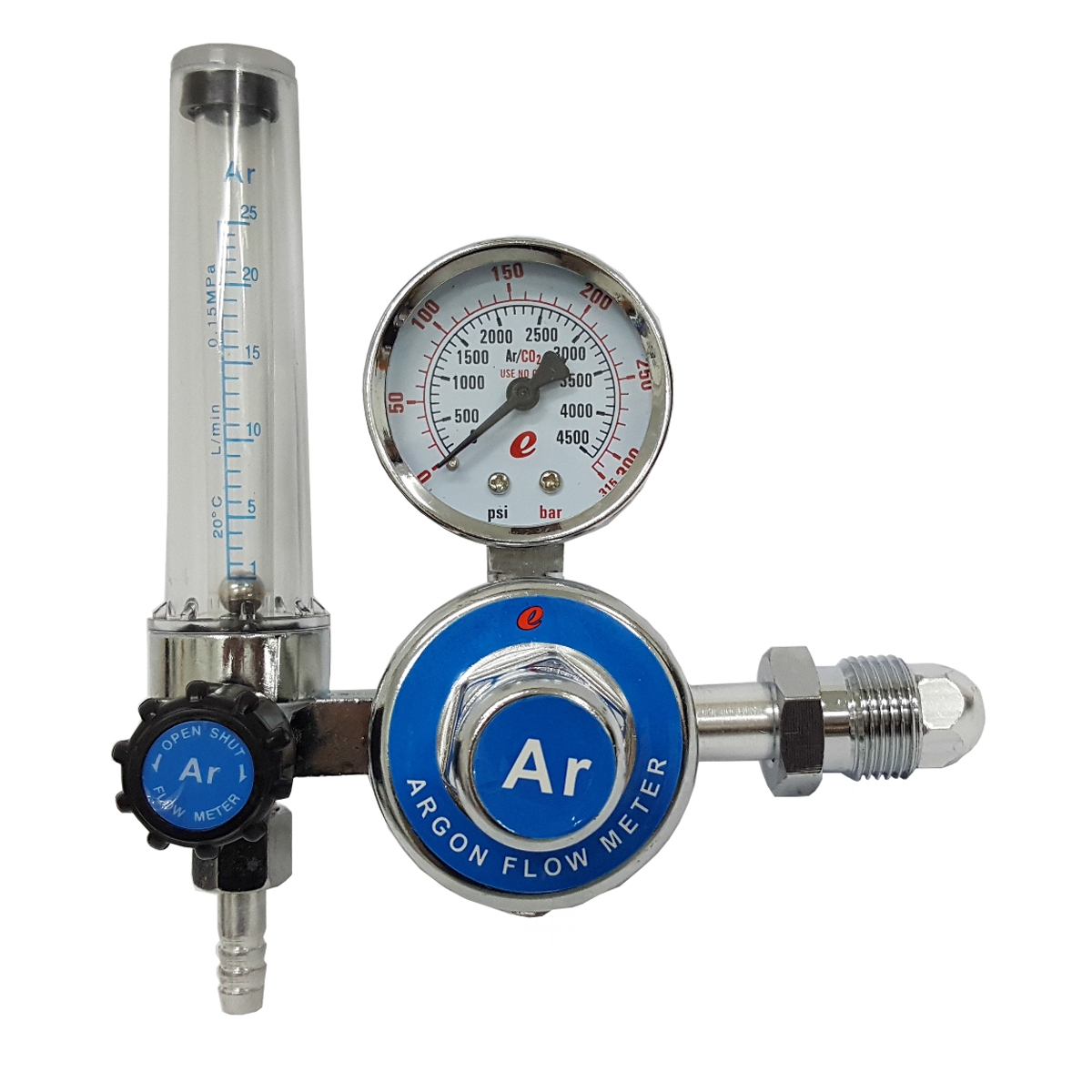 The “e” range of industrial gas regulators are fitted BS standard fittings suited to local industrial gas cylinder valves.