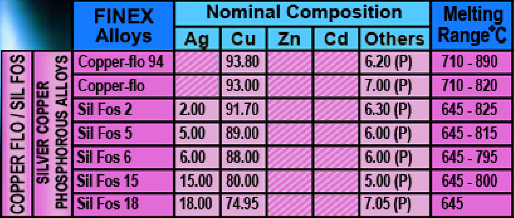 The phosporous-containing brazing alloys on this page have been developed specially for joining copper-to-copper or copper-based materials to one another, Due to their phosphorous content, it is possible to eliminate the use of a flux when brazing copper-to-copper. The brazing alloys must not be used if the service environment contains sulphur.