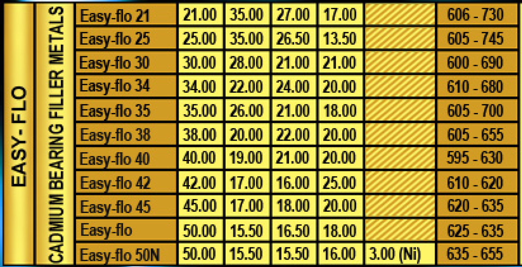 All of these alloys can be used for brazing any steels, copper and copper-based alloys, as well as nickel and nickel-based alloys. However, because of their zinc and cadmium content, there alloys should not be used to braze stainless steels if the finished joints will be exposed to water in service. In this case, early failure of the joint by the mechanism of service corrosion is probable.