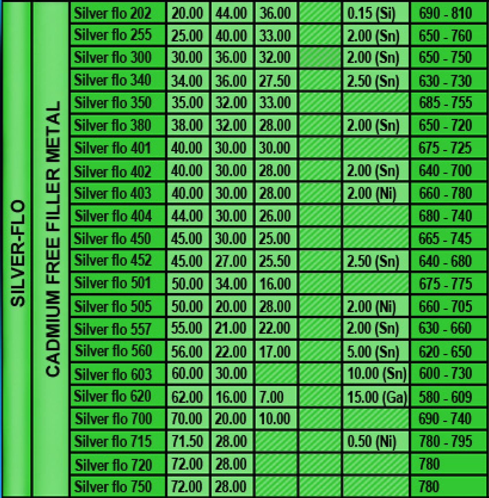 The silver brazing alloys on this page normally be used for service temperatures between -200C up to _150C without additional instruction.