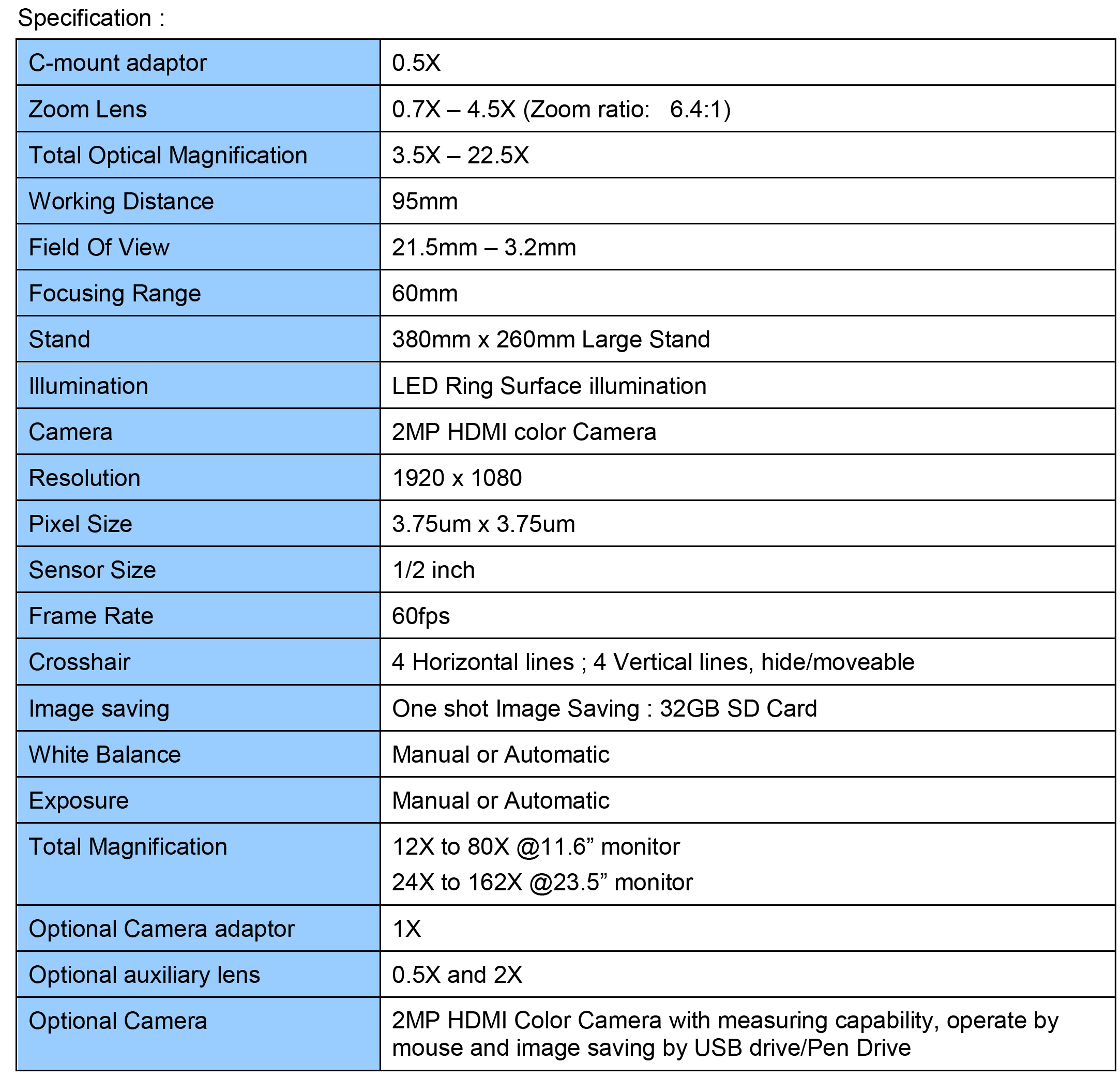 The standard Zoom tube has a magnification range and working distance similar to the most commonly use stereozoom microscope. It can easily replace a stereozoom microscope with choice of stands and cameras. It is also called Industry Video Microscope.