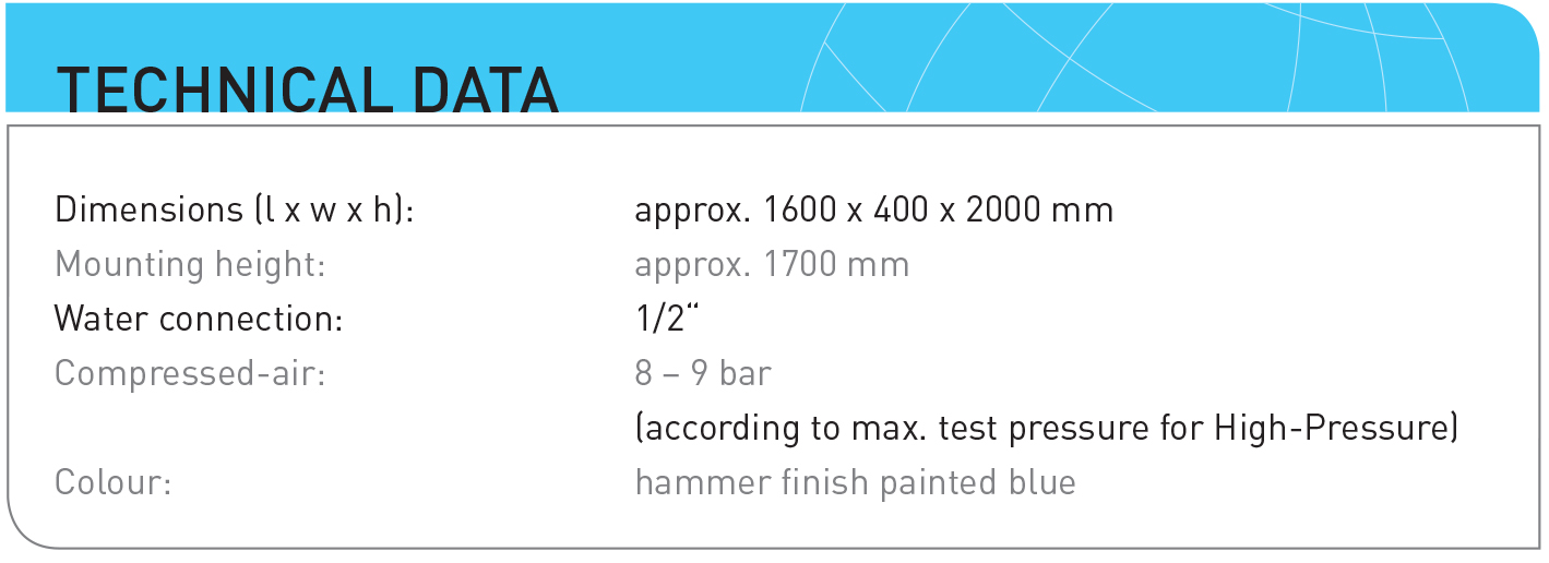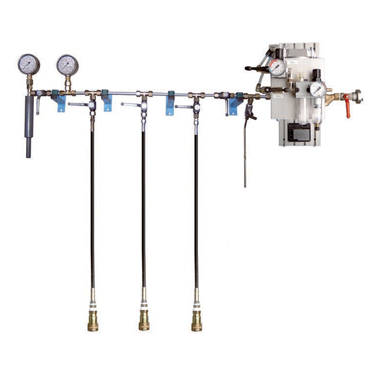The High- and Low-Pressure testing unit, model HND-W-3 is a testing unit with 3 connections for wall assembly. It is suitable for testing of powder- and CO2 -fire extinguishes, CO2 bottles, breathing air apparatus, diving bottles, N2 cylinders etc. of all sizes, dimensions and types.