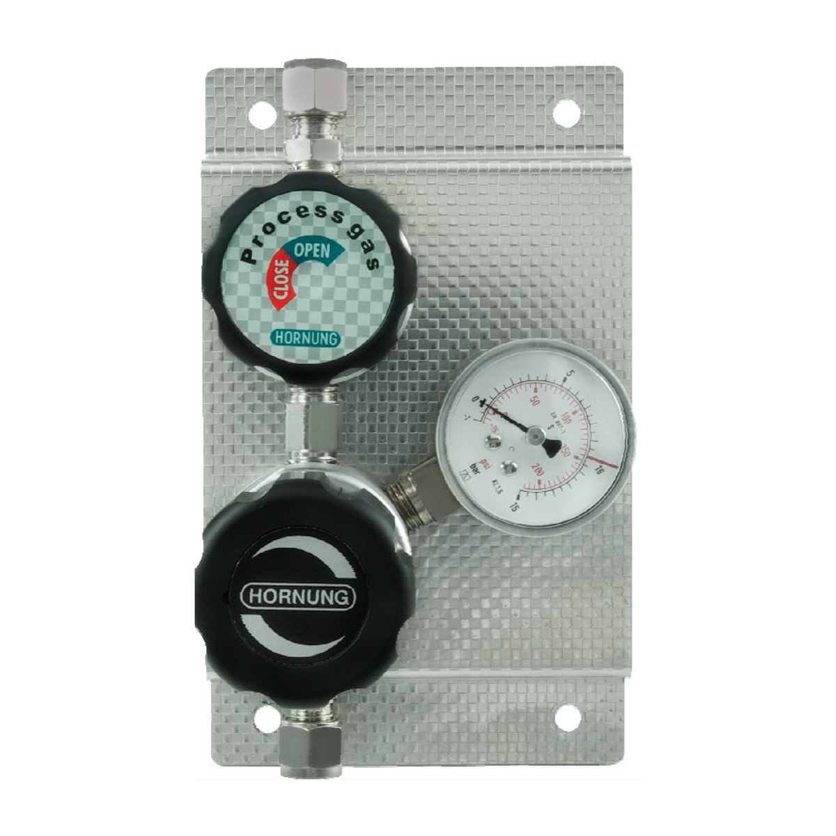 The point of use regulator HP 450 is an system wall version. The point of use regulator is ready mounted on a console and is connected to a permanently laid piping system. It serves as a second-stage and reduces the line pressure to an adjustable working pressure.