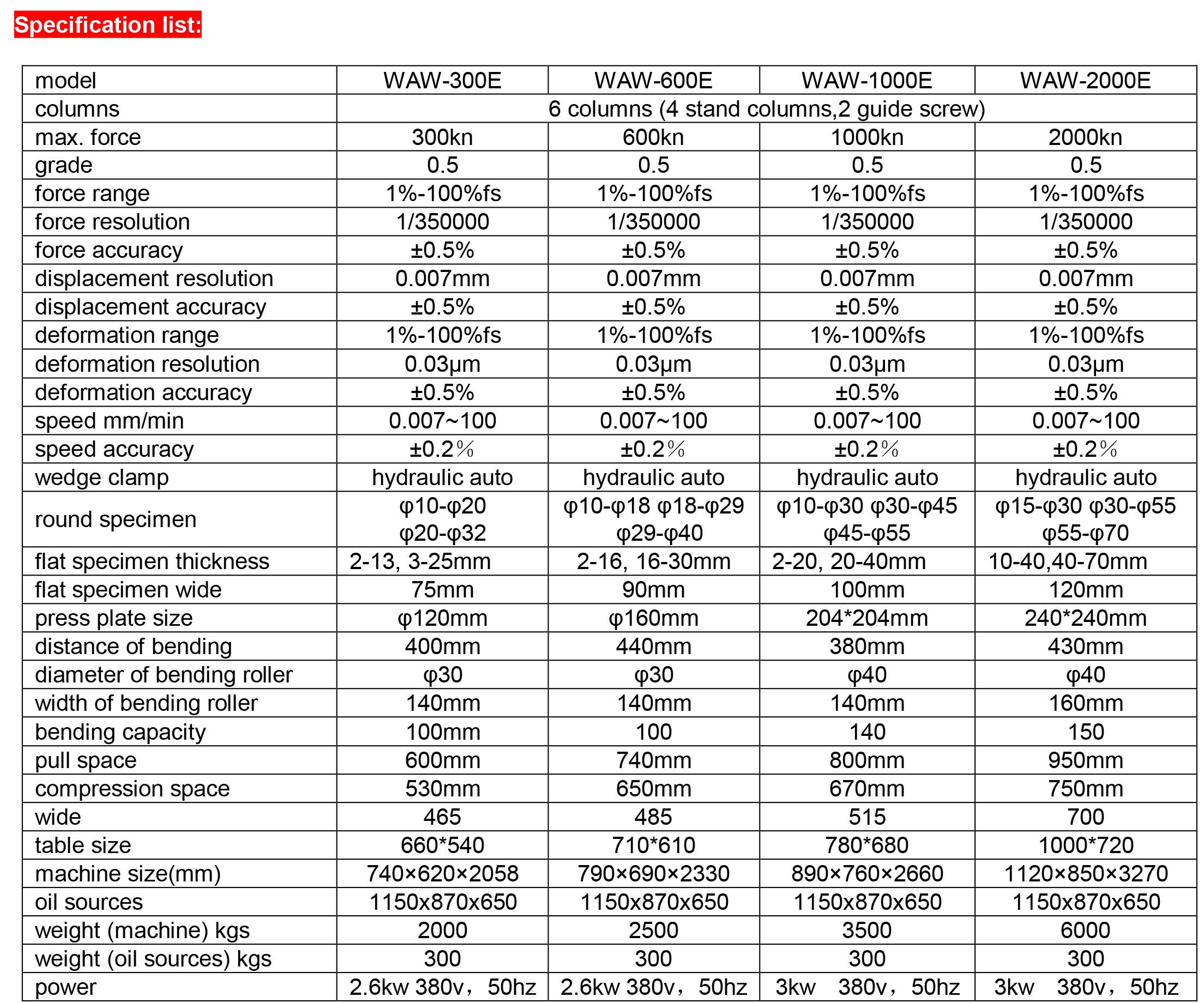 - Maximum Test Force : 100KN / 300KN / 600 KN / 1000KN / 2000KN