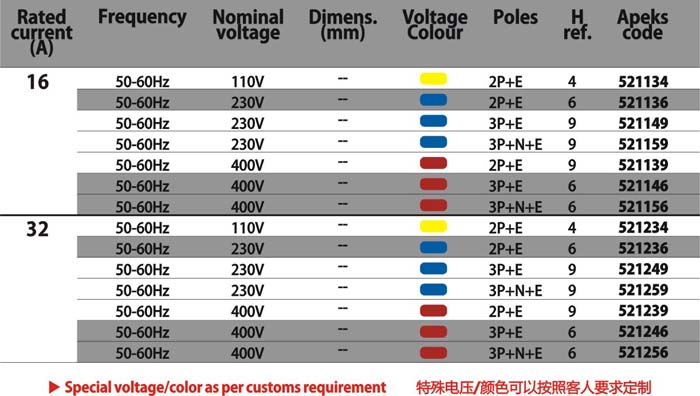 16A/32A 50~60HZ 400V 3P+E 6H Interlocked switch socket-For distribution board installations