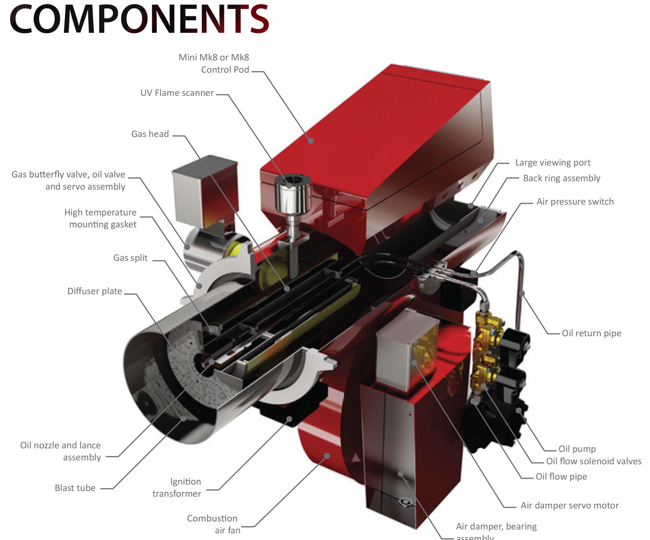 As with all Limpsfield burner’s efficiency is key, therefore we guarantee that the burner will operate at 3% O2 and <10ppm CO throughout the complete firing range, from low to high fire. Add to this a high turndown of 4:1 on gas, and 3:1 on oil, the LP series can therefore supply demanded power, high efficiency, low emissions, reduction in fuel consumption and reliability for a cost effective price tag, with a typical payback of less than 2 years.