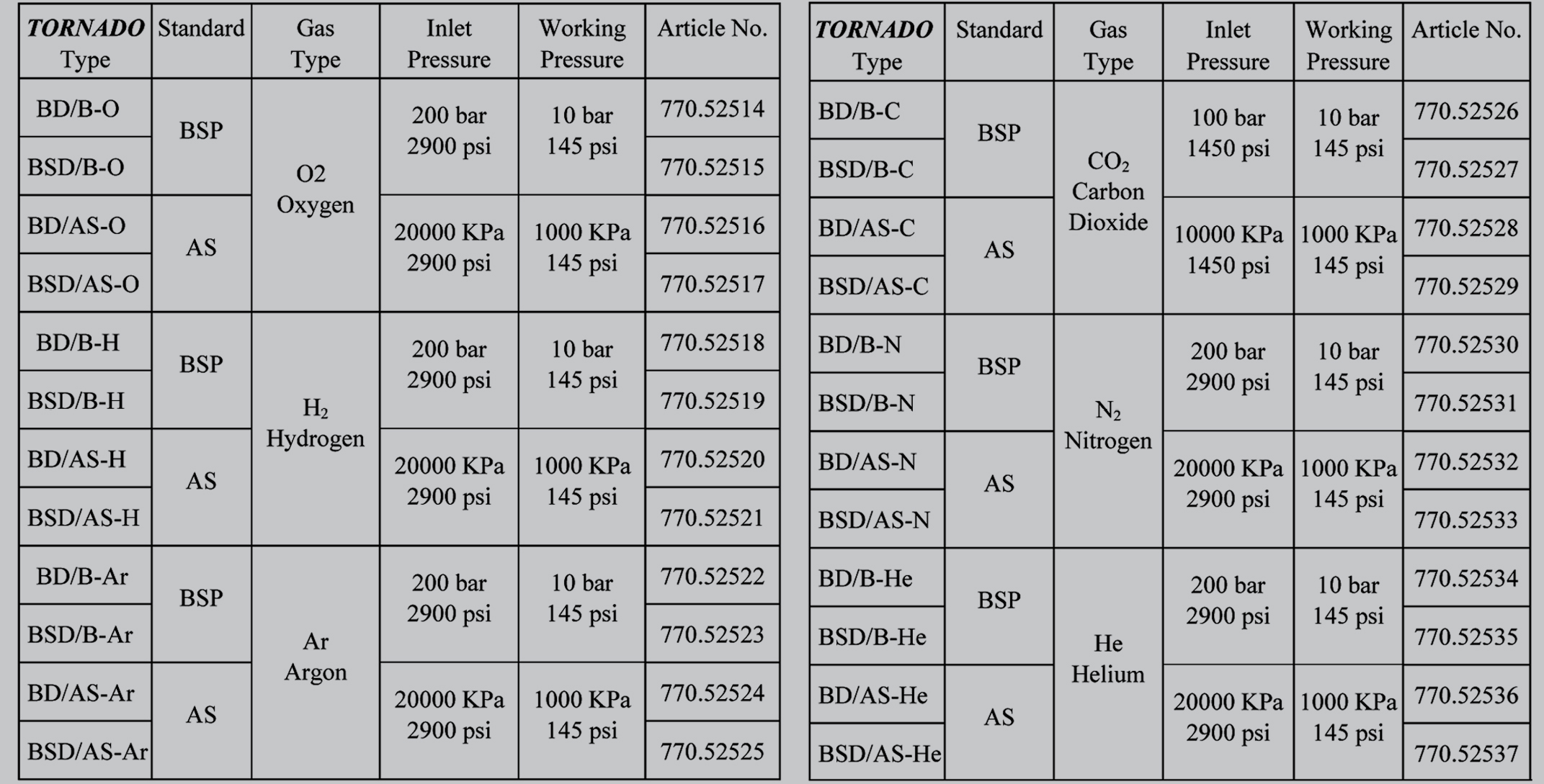 TORNADO regulators series BD and BSD are visibly strong, no nonsense, durable construction that sets the standard for pressure regualtors used the most up-to-date production and testing facilities to ensure a reliable, versatile, affordable, high performance regulator.