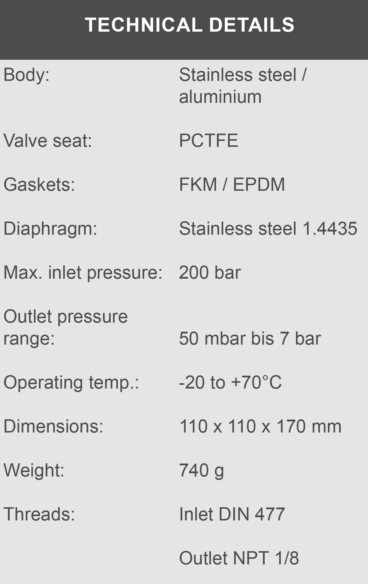 The two-stage design with integrated inlet pressure compensation ensures that a constant outlet pressure is guaranteed even when the inlet pressure drops.