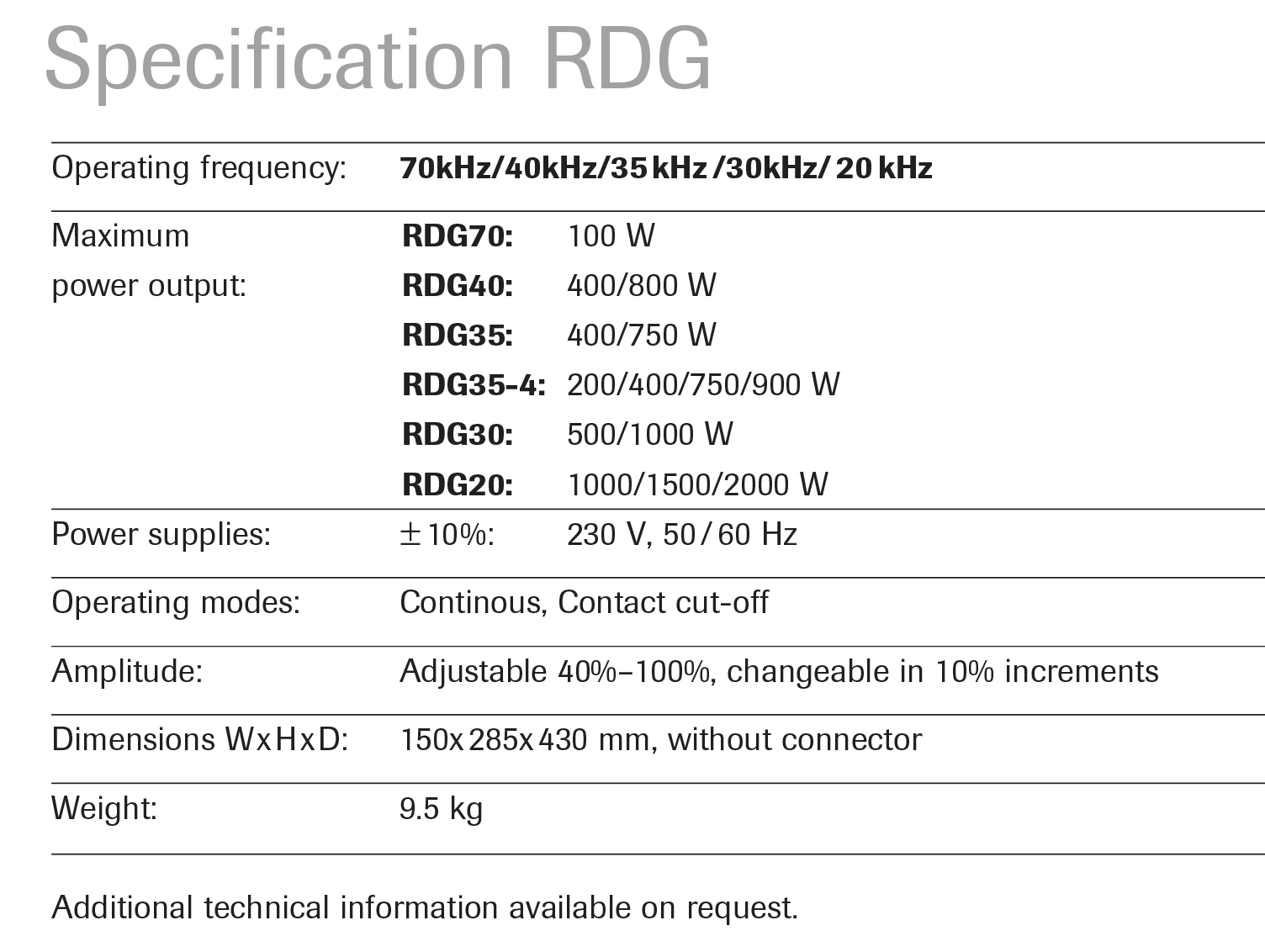 The RDG ultrasonic generators can be used to set a wide range of limits that issue a warning or stop the machine.