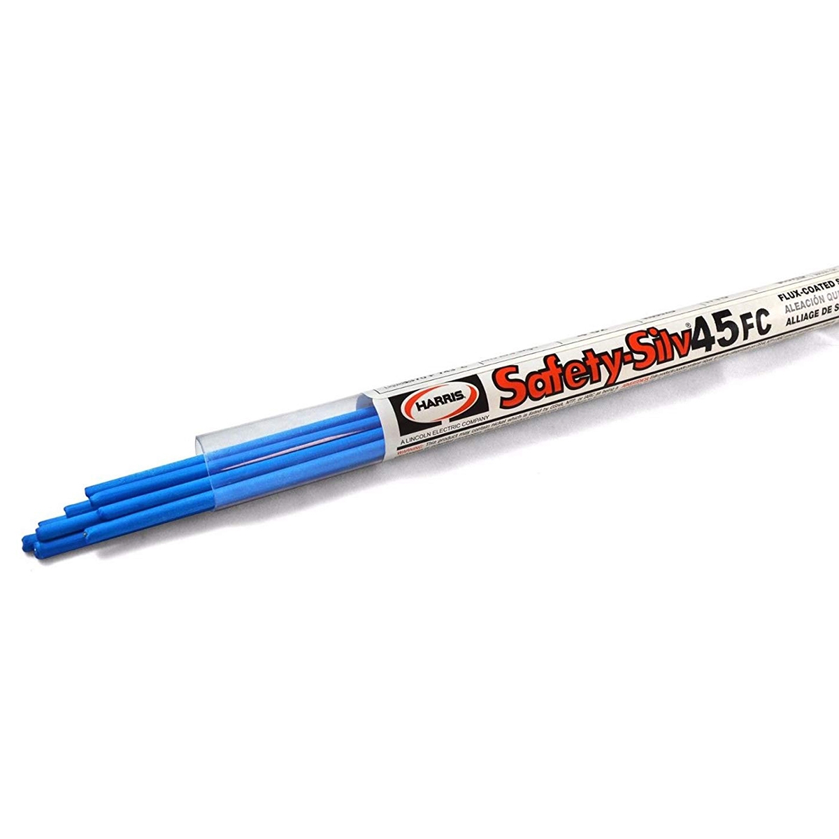 Harris® Safety-Silv® 45FC High Silver Solder measuring 3/32" Dia X 18" is a general purpose flux coated silver brazing alloy and comes in 4 oz tube. It features good ductility and capillary flow.