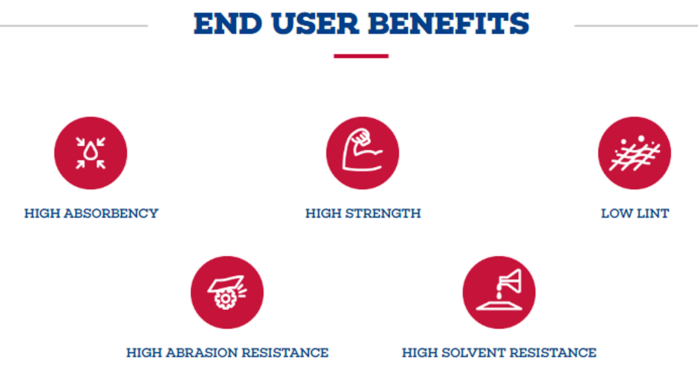 Sontara® products are made using proprietary technology for high demanding applications. High-speed water jets are used to hydraulically entangle various fibers to form a strong absorbent web. Unlike many nonwoven fabrics, Sontara® uses no binders, chemicals or adhesives. It has exceptional mechanical strength, excellent absorbency, and because the fibers are washed during fabric formation, it exhibits very low lint. These unique features make Sontara® ideal for the cleaning requirements of the quality-conscious user.