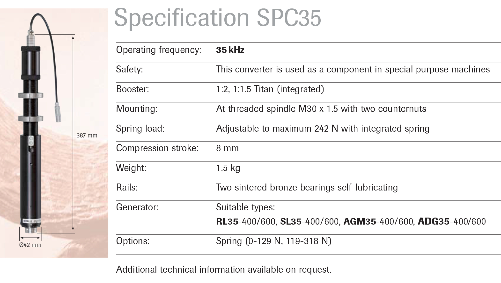 Suitable for automated welding operations with short cycles, Ideally suitable as a replacement for composite horns, Constant spring pressure, Heavy duty