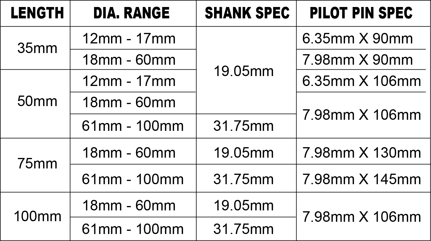 With diameter size ranging from 14mm – 70mm & cutting depth of 35mm – 100mm, we are confident to satisfy all your drilling needs.