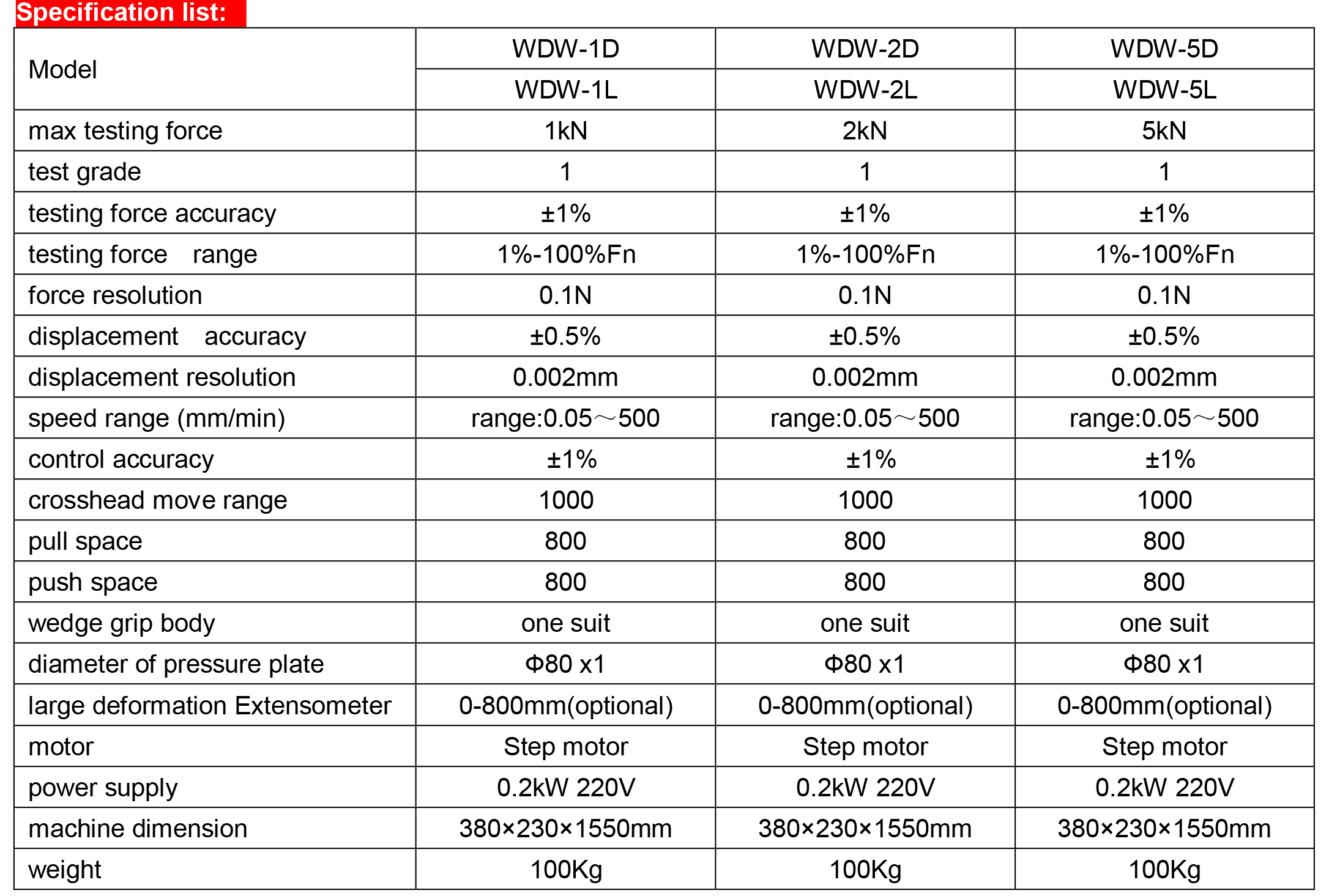 - Maximum Test Force : 1KN / 2KN / 5KN