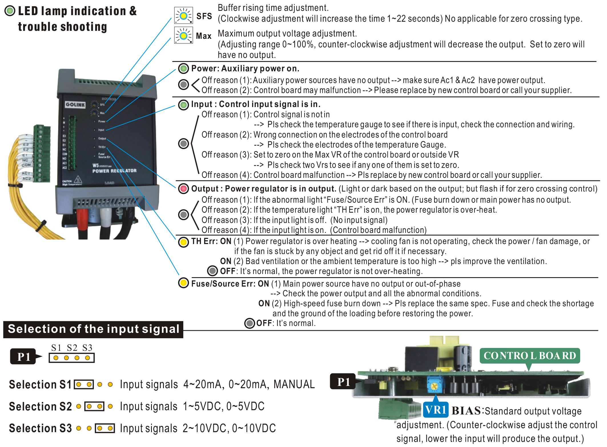 - Build-in buffering output adjustment (SFS VR) with adjustable range 1~22 seconds. (Only for the phase control)