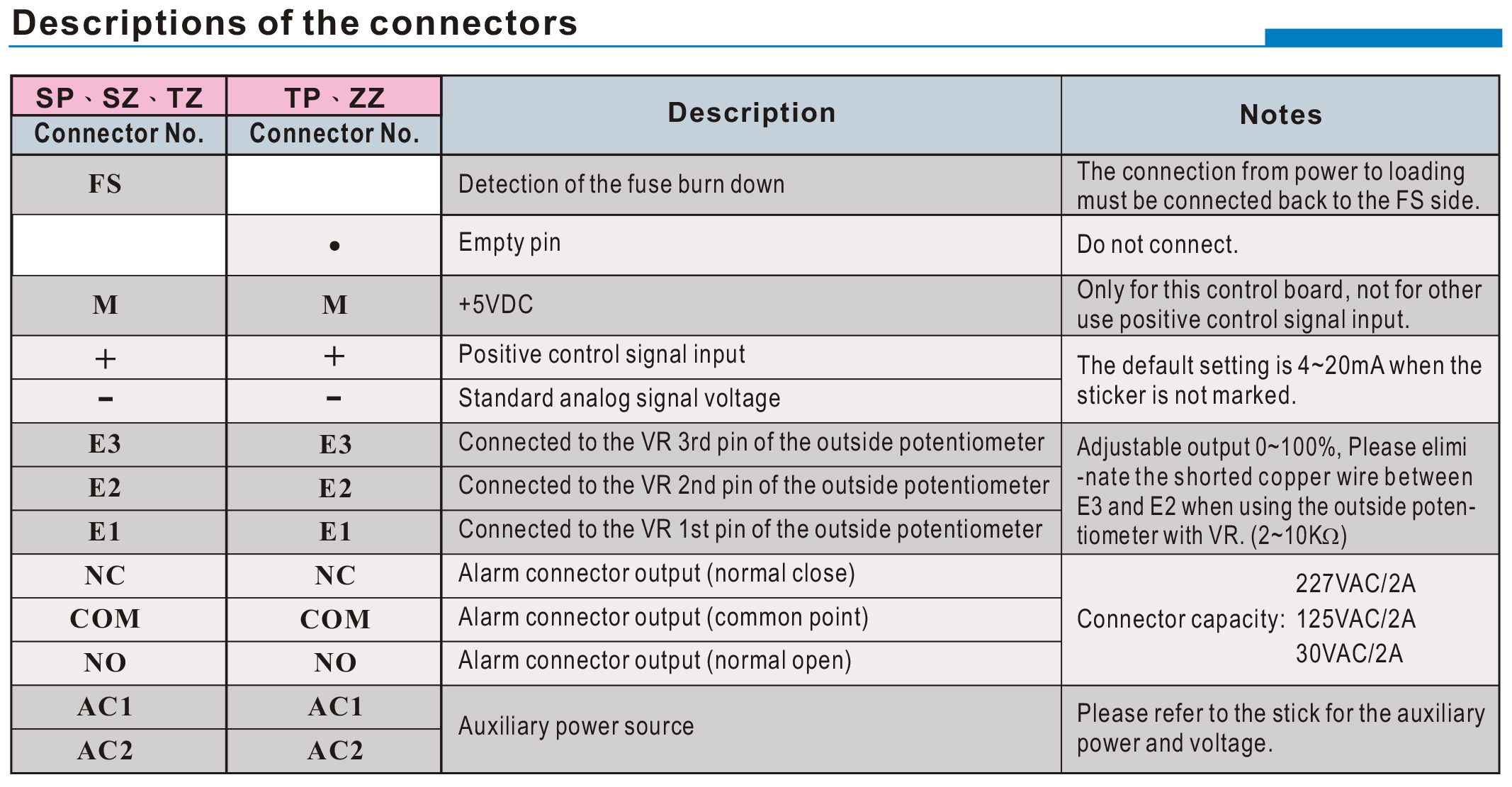 - The auxiliary powers (AC1 & AC2) are independently controlled for all models.