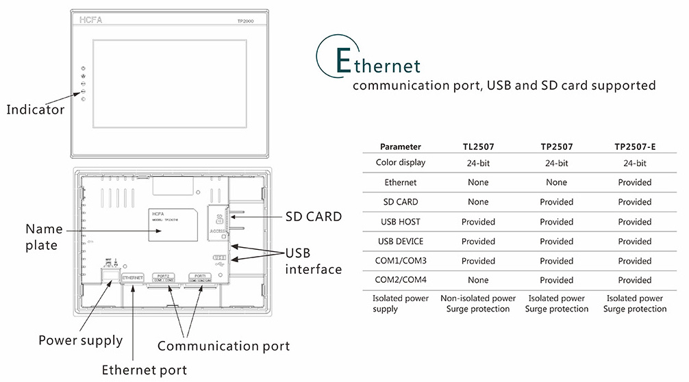 Quick Start, Easy-to-use, Wide range of size, Multiple interfaces, New configuration, Isolated DC Power Supply, Ethernet port, Serial port, SD card, USB interface