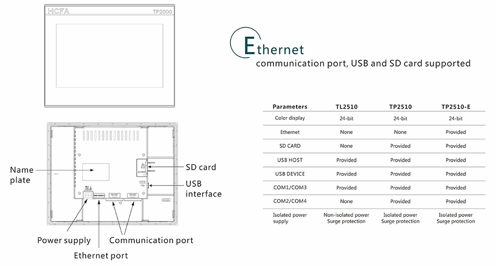 Communication port, USB and SD card supported.