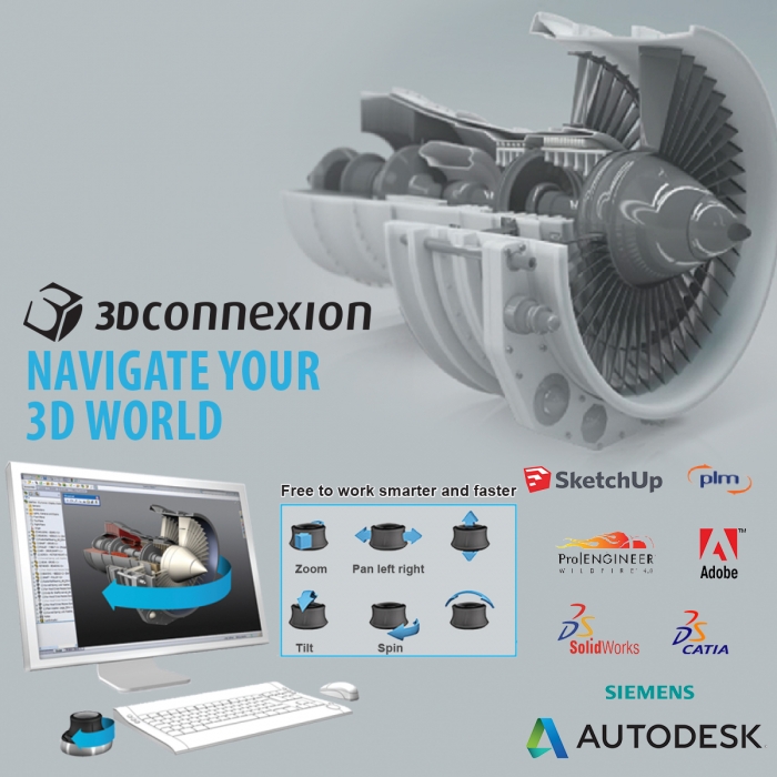 3Dconnexion navigation devices are fully certified by workstation partners and are ideal for all product design engineers, including those in CAD (computer-aided design), CAE (Computer-aided engineering) and CAM (computer-aided manufacturing), as well as for DCC (digital content creation) professionals involved in animation, modeling, game creation, and visualization.